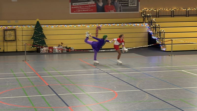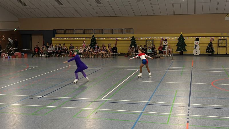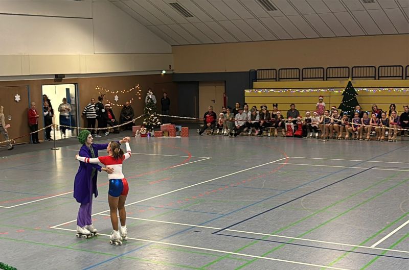 Weihnachtsfrau und Weihnachtsmann hatten sich in Schale geschmissen und moderierten flott durch die zahlreichen schwungvollen Darbietungen der kleinen und großen Rollkunstläufer.