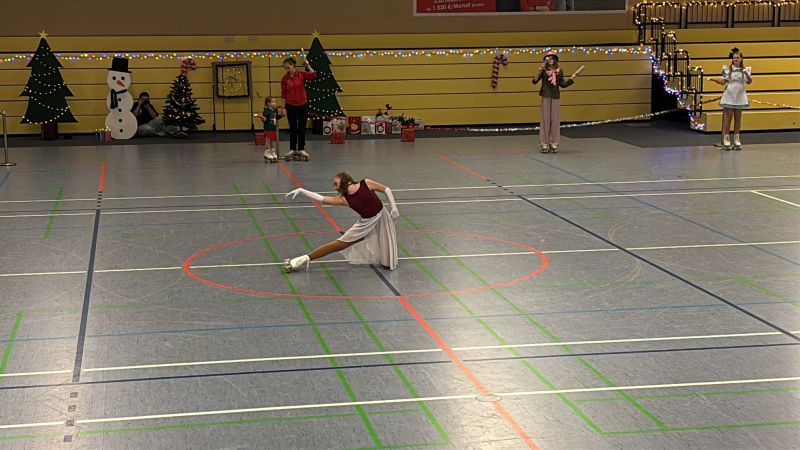 Nach 2019 und 2023 hatte der SV Fläming Skate erneut zum Weihnachtsschaulaufen nach Luckenwalde eingeladen. Neben den zahlreichen Rollkunstläufern vom SV Fläming Skate, ESV Lok Potsdam, Haldensleber RV und den Neuköllner Sportfreunden bereicherten Speedskater und eine Karnevalstanzgruppe die abwechslungsreiche Show. Die Läuferinnen und Läufer vom ESV Lok Potsdam präsentierten acht Showstücke: „Die Weihnachtsbäckerei“ der Anfängergruppe, „Devil vs. Angel“ der Breitensportgruppe, „Elegance in Ascot“ der Hobbygruppe und fünf Stücke der Leistungsgruppe „Das Phantom tanzt“, das Solo „Ich bin ich“ von Mia, das Solo „Die Reise zu Weihnachten“ von Lara, das Duo „You don’t own me“ von Milena und Lara und das Quartett „Alice im Wunderland“ mit Julia, Meret, Mia und Rebecca. Die Freude und Energie, mit der die Sportler ihre Stücke präsentierten, übertrug sich auf die Zuschauer, die begeistert applaudierten.